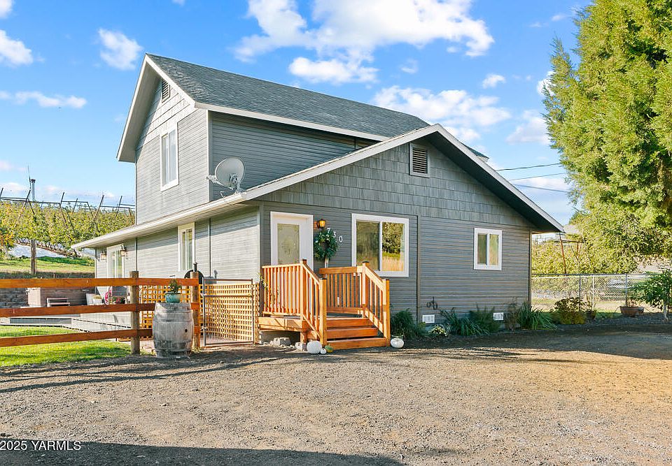 Experience the perfect balance of country living and modern comfort in this beautifully designed 3-bedroom, 3-bath farmhouse just minutes from downtown Selah. Sitting on over half an acre of fully fenced land, this property offers space, privacy, and timeless style.Inside, you'll find a warm, open layout with inviting natural light, shiplap accents, and thoughtful farmhouse touches throughout. The spacious kitchen features modern appliances, crisp white cabinetry, and a large island that anchors the heart of the home. The living area flows seamlessly to the back patio--perfect for outdoor dining or quiet evenings under the stars.The primary suite offers a private retreat with a luxurious ensuite bath. Step outside to enjoy the hot tub, dedicated dog run, and plenty of room to garden, play, or simply take in the country views.Modern farmhouse character, generous outdoor space, and close proximity to schools, shops, and dining, delivers the best of both worlds--peaceful rural living with in-town convenience.