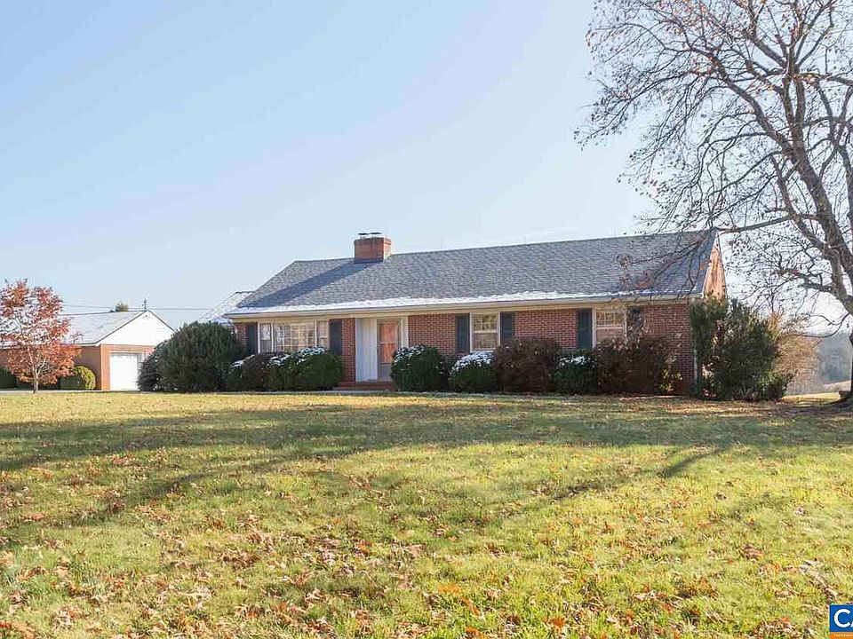 This Charming Brick Ranch is surrounded by Gorgeous Country Views, stately-mature Trees and located in the Desirable Bybees Church area. The property features a large Detached Garage, a walk-out Basement, Covered three season Porch with Soapstone Patio, a cozy pellet stove in the Basement. Original solid Hardwood Floors, Wood Cabinets in the Kitchen, which also views out the breathtaking Country Views. The sunny, grassed yard is perfect for Garden. Numerous Opportunities with this Sweet, Sweet Property! Numerous updates made to include a newer roof, hot water heater, hvac, wood stove and septic line.