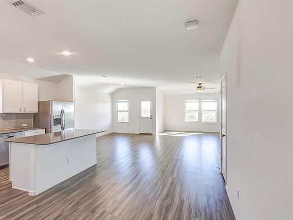 This beautiful single story home at Highlands at Hutto features 4 Bed and 2 Bath. Open concept kitchen has lots of storage space and laid out well. The kitchen includes a huge island with quartz counters, breakfast bar and plenty of cabinets. The large primary suite has dual sinks, a walk-in closet that everyone will love.