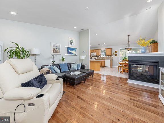 Welcome home to easy living in this beautifully maintained 55+ community where lawn care and snow removal are taken care of for you! This stunning home offers a perfect blend of comfort and style with neutral paints and flawless hardwood flooring flowing through most of the living spaces. At the heart of the home is a charming three-sided gas fireplace that creates a warm and inviting focal point between the living, dining, and kitchen areas. The open-concept kitchen is vaulted and filled with natural light, featuring recessed lighting, tile flooring, a breakfast bar, plenty of cabinetry, and a tasteful tile backsplash. The refrigerator is included, making this kitchen truly move-in ready. Just off the kitchen, the bright and cheerful sunroom is the ideal spot to relax or entertain, with a walk-out to your private patio. Convenience continues with a well-equipped laundry room offering cabinetry, a pantry closet, and included washer and dryer. The spacious primary bedroom boasts two closets, hardwood flooring, and a beautifully tiled en-suite bath. A comfortable guest bedroom with hardwood floors completes the interior. Additional features include a one-car garage and a 3-ft crawl space with a concrete floor—perfect for extra storage. The community’s fantastic location offers easy access to grocery stores, the post office, and all the charm of historic downtown Mullica Hill—known for its boutique shopping, cozy tea room, ice cream parlor, and welcoming small-town atmosphere. Enjoy an active senior lifestyle in Harrison Township, where comfort, community, and convenience come together perfectly. Just minutes to the award winning William Heritage Winery and the New Inspira Hospital.