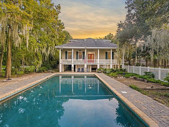 Nestled on over 3 serene acres in Mandeville, this historic lakefront home exudes timeless charm and Southern elegance. As you approach via a private drive lined with beautiful live oak trees, the traditional Southern gem reveals itself, boasting a grand center hall entryway that sets the tone for the rest of the property. Inside, the heart of pine floors and reclaimed doors from the Old Ursuline Convent in New Orleans lend a sense of historic grandeur, while the original glass windows and French doors throughout enhance the home's classic appeal.