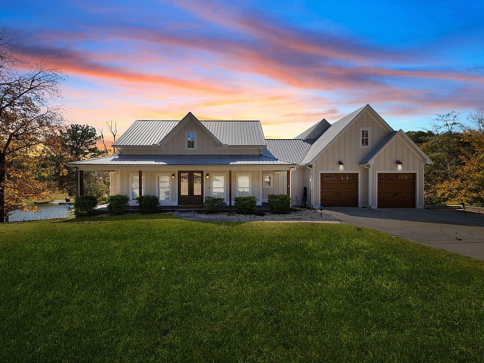 STUNNING CUSTOM LAKEFRONT Modern Farmhouse-style home sits on Lot 48 of Highlands of Lay. With 2,810 sq ft of custom-designed living space, this home combines modern comfort, elegant finishes, and serene lakefront living. Step inside to an open-concept floor plan featuring luxury vinyl plank, stone, and concrete floors, and a bright, airy flow throughout. The gourmet kitchen showcases granite and quartz countertops, custom cabinetry with soft-close doors, stainless steel appliances including a French-door refrigerator and apron-style farmhouse sink—all tied together with sleek black hardware for a timeless, upscale look. The split-bedroom layout provides privacy for the spacious master suite, which boasts a large walk-in closet, dual vanities with granite counters, a double-sized marble shower with glass enclosure and a classic claw-foot soaking tub, and a private commode room. Single level living, plus an EXTRA-LARGE daylight basement, with safe room and full bath.