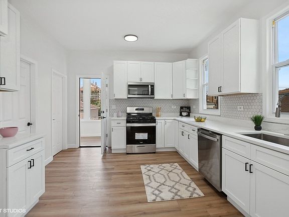 Welcome to your dream home! This stunning, fully remodeled 4-bedroom, 3-bath residence offers modern living at its finest, situated on a generous double lot that provides ample outdoor space for relaxation and recreation. From the moment you step inside, you'll appreciate the fresh updates and thoughtful design throughout this beautiful home. The freshly painted interior exudes warmth and style, featuring new flooring, elegant new trim, and energy-efficient LED lighting, complemented by six-panel doors throughout for a polished look. The main floor boasts impressive 9-foot ceilings, enhancing the spacious feel of each room. As you enter, you are greeted by a bright and inviting living room with new blinds and a stylish new front door. The dining room flows seamlessly into the eat-in kitchen, which is a chef's delight, equipped with new soft-close cabinets, stunning quartz countertops, brand new stainless steel appliances, and a chic tile backsplash. The new sink and windows enhance functionality and natural light, while the spacious walk-in pantry provides ample storage. The main floor also features a versatile bedroom that can serve as a guest suite or home office, along with a beautifully remodeled full hall bath, showcasing a new vanity, fresh tile, a new tub, and modern fixtures and hardware for a spa-like experience. Enjoy outdoor living in the welcoming 3-season back porch, perfect for relaxing year-round. Ascend to the second floor, where you'll find a primary bedroom complete with a large walk-in closet, offering plenty of space for your wardrobe. The full remodeled bathroom features new tile, a spacious tub, a double sink vanity, and stylish lighting. The second bedroom also includes a walk-in closet, providing additional storage and comfort. The finished basement is an entertainer's dream, featuring a large family room and an additional bedroom, both adorned with new vinyl flooring, updated lighting, and six-panel doors. This level also includes a full remodeled bath with a new vanity, tub, toilet, and modern lighting and tile, ensuring convenience for family and guests alike, as well as a storage room for easy organization. The exterior of the home boasts freshly painted vinyl siding, new front porch steps, and a fully fenced front and backyard, providing a safe haven for children and pets. The new concrete walkway and garage pad enhance the home's curb appeal and functionality. Notable updates include a new hot water heater, new AC, and new furnace installed in 2024, a brand new thermostat, a new 100-amp circuit breaker, a new sump pump (2024), and new insulation throughout the home. Don't miss the opportunity to make this beautifully updated home your own!