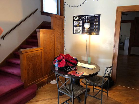 Six room house, four blocks from downtown, free city shuttle bus and regular city bus stop within a block of residence. Four finished levels of space. Two car stall garage with off-street parking and front porch. Central air-conditioner, furnace, hot water heater and electrical service. Kitchen includes refrigerator, stove, dishwasher and disposal. Living room, dining room, laundry and bathroom, also on the main floor. Large finished family room, den and bathroom in the basement. Second floor includes bedrooms and a bathroom. Top floor has a large study and closet. 360 day lease.