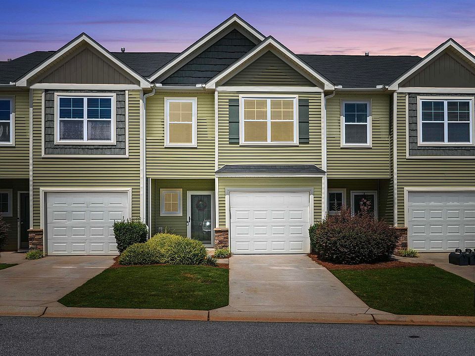 The Townes at Brookwood offers this captivating 3-bedroom, 2.5-bathroom haven at 730 Elmbrook Dr. This secure, gated community provides a maintenance-free living. The spacious open-concept layout creates a light-filled living and entertaining area, perfect for gatherings. The gourmet kitchen boasts solid maple cabinets in a crisp white finish with soft-close functionality that extends nearly to the ceiling for maximized storage. Under-cabinet lighting illuminates the stunning granite countertops, while a ventless gas fireplace adds warmth and ambiance to the great room. A convenient powder room sits on the main floor, and the attached one-car garage with epoxy-finished flooring offers exceptional storage space. All bedrooms are located upstairs for tranquility. The spacious owner's suite boasts ample natural light, dual vanities, a separate shower, and a relaxing garden tub in the en-suite bathroom. Ceramic tile graces the bathrooms, while a walk-in laundry room adds convenience. A dual-zone HVAC system ensures year-round comfort, and modern rustic laminate flooring throughout the main floor complements the contemporary aesthetic. Beyond the interior enhancements, this townhome offers a private setting at the gated back patio with a captivating wooded view, ideal for relaxation and enjoyment. Embrace an active lifestyle with the Prisma YMCA in Simpsonville within walking distance. Bridgeway Station in Mauldin is just a short drive away for a quick retail fix or a night out. When you crave community spirit, explore downtown Simpsonville's charming shops and restaurants, which are also easily accessible.