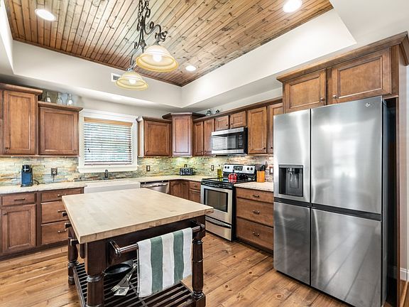 Don't miss your opportunity to view this stunning home! Beautiful wide plank hardwood flooring throughout upstairs, tongue & groove ceiling in kitchen with butcher block island, stone backsplash, Kohler farm sink & many more custom built-ins. Spacious floor plan on main level opens to living room with gas fireplace, dining off the kitchen and opens to deck with fenced backyard, above ground pool & Resin decking surrounding pool (updated in 2020). Master suite with large walk-in closet & bathroom en suite with his/her sinks & walk-in tile shower. Enjoy entertaining downstairs in the family room! Plenty of parking in your 34x22 attached garage offering available space for up to 4 vehicles. Additional parking in the 24x24 detached garage/carport. New HVAC/water heater in 2020.