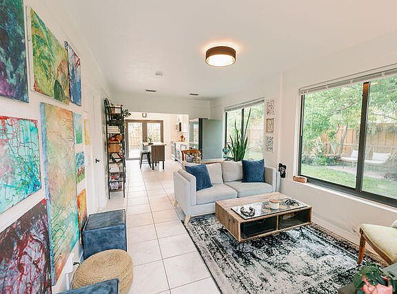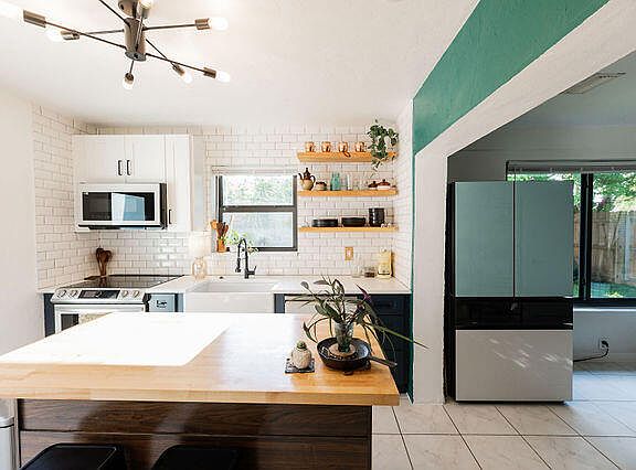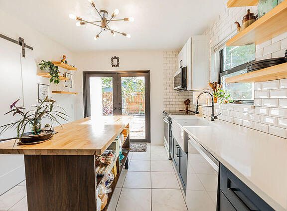 Unbeatable value in the heart of West Palm Beach! Move in ready 2 bed 2 bath CBS Single family home on large lot with all the upgrades & no HOA! Metal roof, electrical panel, sprinkler system & all IMPACT windows and doors installed in 2023. Completely renovated inside and out! Enjoy the South Florida lifestyle at it's very finest, with an ample newly fenced private oasis designed & ready for entertaining. The inside of the light & bright home has been meticulously renovated to the highest standard. Design features include a thoughtful open concept floor plan, large windows & sliders allowing for an abundance of natural light, quarts counter tops, subway tile backsplash, custom cabinetry, high-end new appliances, custom butcher block island, barn doors & all updated fixtures. The property also boasts a substantial driveway providing residents and guests with ample parking.