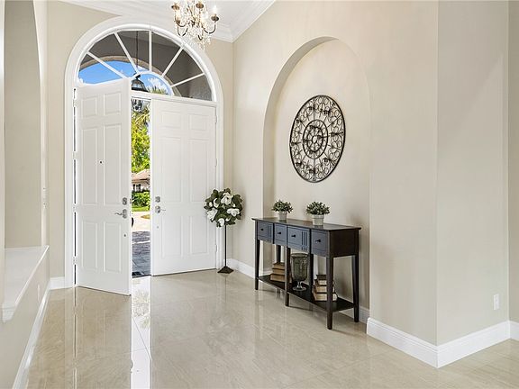 Chic remodeled Coastal/Modern residence offers indoor/outdoor living and the opportunity for boating with 120-feet of waterfront and a full-service dock with 2 boat lifts, granting easy access to the Intracoastal. Custom details include updated Chef's kitchen w/ quartzite counter tops, Thermador & Sub Zero appliances. Heated pool & zero-edge spa, high ceilings, extensive millwork, decorator-caliber tile flooring and a stack-stone gas fireplace flanked by custom cabinetry. Main rooms offer serene pool and water views. New roof in 2019.