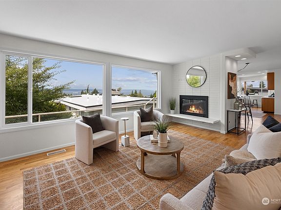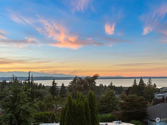 Gorgeous sunset & mountain views from this coveted Edmonds Bowl home! Live in the heart of downtown Edmonds next to shops, farmers markets, parks, library and ferries. Own a slice of PNW skies with stunning unobstructed views of the Sound and Olympics spanning from Woodway to Whidbey Island, from every Western window on your main floor. Enjoy one floor living in your primary Bdr with 2 walk-in closets, fireplace and ensuite bath, 2nd bdr with murphy bed and full bth, laundry, LR, DR, and Kitch w/ eating nook all on the same floor. Basement is set up as a ADU with 2nd kitchen, 2 bdr, full bth and separate entrance for potential rental income or MIL. Large 2 car garage and RV parking. Home has central AC and solar panels.