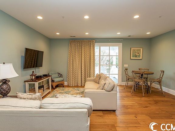 This 1-BR/1 end unit Exchange Flat features hardwood floors in Great Room, SS appliances & granite countertop in Kitchen, raised panel cabinetry & covered rear deck. North Beach Plantation offers a 2.5-acre oceanfront pool area with lazy river and swim-up bar, world-class Cinzia Spa, Beach Fit fitness center, and on-site restaurants conveniently located near Barefoot Landing.