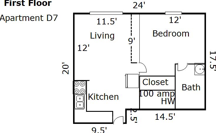 NOTE: All units are similar floor plans. We are continuously getting apartments ready for rent. The above unit is subject to change for this reason. Some have new appliances, some have up-dated bathrooms, many have all new flooring, and all have been painted. Thank you for your interest in Northend Gardens!