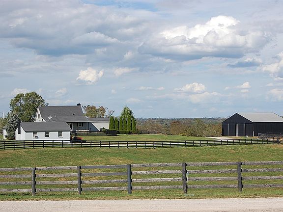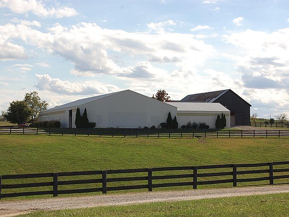 Turn-key horse farm offering 50 stalls in 3 barns; fly spray system; lightning rods; breeding shed with stocks dummy and lab; run-in shed; equipment and bulk shavings storage; and a 70' x 100' indoor arena. Employee housing includes an efficiency apartment in the barn and a 3 bedroom, 2 bath mobile home with an added 8' x 8' mud room and deck. The main house features hardwood floors, fireplace, basement, covered front and back porches, new kitchen appliances, and a large 2 car detached garage. All in move-in condition! There are 17 plank-fenced paddocks and fields.