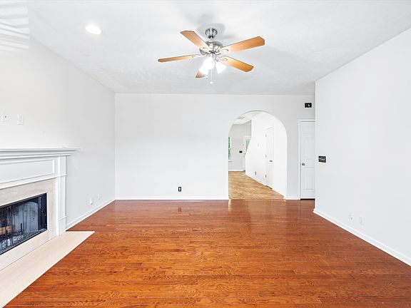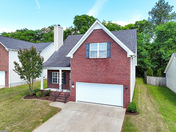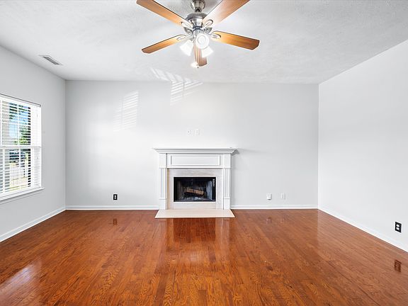 Freshly painted throughout, this move-in ready home features a spacious open great room with hardwood floors and a wood-burning fireplace. The kitchen offers a functional island, stainless steel appliances, and ample cabinet space. Refrigerator and washer/dryer to remain. Main-level primary suite includes a large walk-in closet and en-suite bath with double bowl vanity. Three additional bedrooms are located upstairs, offering flexible space for family or home office needs. Enjoy outdoor living with a rocking chair front porch and a spacious back patio with basketball goal. Fenced backyard backs to mature trees for added privacy. Don’t miss this inviting home with a great layout and thoughtful features throughout!