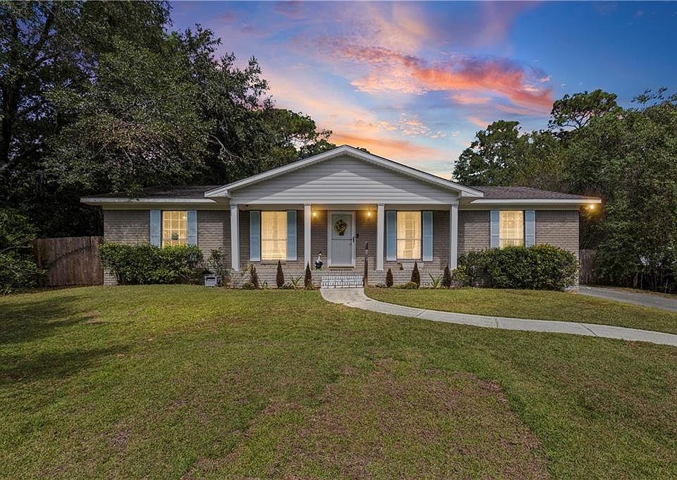 Welcome home to this charming 3-bedroom, 2-bath ranch-style home in the heart of Mobile, Alabama! Nestled in the sought-after Pine Run subdivision, this beautifully maintained property blends classic Southern charm with modern upgrades and timeless grandmillennial style. Inside, you'll find luxury vinyl plank flooring throughout, with ceramic tile in the kitchen, bathrooms, and laundry room. The kitchen features beautiful granite countertops and an upgraded appliance package including a dishwasher, refrigerator, oven, gas water heater, and gas dryer. The home also offers a newer architectural roof for added peace of mind. Step outside to your own private, calming back patio which is the perfect spot to unwind, entertain guests, or enjoy watching TV outdoors in a peaceful setting. The fenced backyard includes a double carport and a separate storage shed, offering plenty of space for tools, hobbies, or extra storage. Conveniently located near Optimist Lake, this home offers the perfect balance of comfort, convenience, and just minutes from shopping, dining, and all that Mobile, AL has to offer. Schedule your private showing today! Listing agency makes no representation as to the accuracy of any information deemed important. Buyer and/or buyers agent to verify all details.
