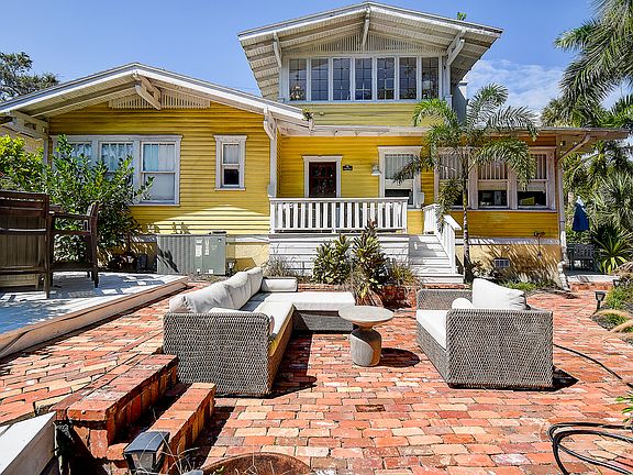 One of the most unique pieces of residential history you'll find in St. Pete, a house on the hill in Roser Park. It feels like a time capsule here - stepping back into a simpler time of American History. I wish these pictures captured the elevation and views of this house better - you'll have to come see it in person to take it all in. This house is the best of both worlds - nestled in peaceful Roser Park surrounded by mature trees and other beautiful historic homes but also only blocks away from Downtown St. Pete. The yard has been optimized for outdoor enjoyment - you'll find multiple zones to enjoy the great views including a cozy front porch, a fire pit area, a back porch and a recently built deck that overlooks the creek with outdoor grilling area and plenty of seating.
