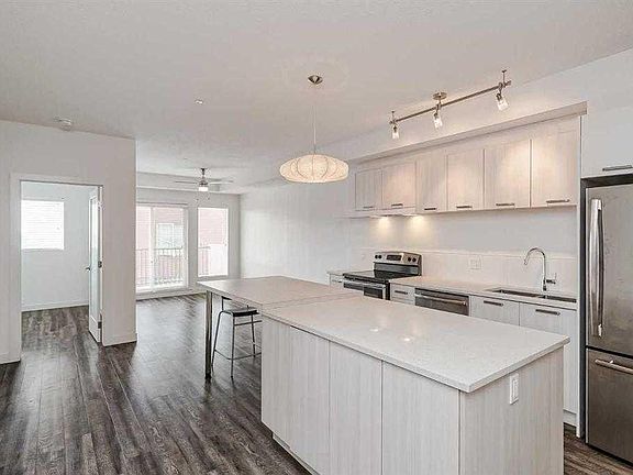 Beautiful, bright, just like new condo in a prime Location with a south-facing balcony, perfect for enjoying sunny mornings. With an open concept, you'll be captivated by the modern interior. The kitchen is beautiful with lots of quality cabinets. Pristine white quartz countertops, with timeless elegance. The stainless steel appliance package ensures that your culinary adventures are met with modern conveniences. The primary bedroom is your own personal sanctuary, complete with a walk-in closet and the ensuite bathroom featuring an upgraded shower and sink. the Nice den / flex room is an added bonus. Natural light floods the interior through the large windows and French door leading to your personal balcony, creating a warm and inviting atmosphere throughout the day. Luxurious, durable flooring runs through the unit with large porcelain floor tiles in the bathroom. The nine-foot ceilings add a sense of spaciousness and airiness to the condo. The balcony is equipped with a gas line, making it ideal for outdoor cooking and entertaining. You’ll find a full laundry room conveniently located within the unit, providing practicality and ease to your daily routine. Enjoy the freedom to share your home with furry friends, as pets are allowed in this building, but must be approved by condo board. The building provides secure and heated underground parking, ensuring your vehicle is always protected and accessible. The unit also comes with a separate assigned storage locker. This condo is surrounded by playgrounds and parks. Explore the trendiest local restaurants and shops, just steps away from your doorstep. With in-floor heating throughout the condo. Don't miss out on the opportunity to call this luxurious condo your own. Experience the perfect blend of style, convenience, in an ideal location. Come and see for yourself schedule a viewing today!