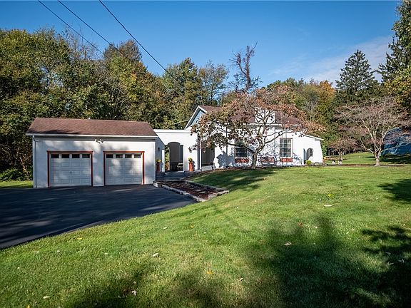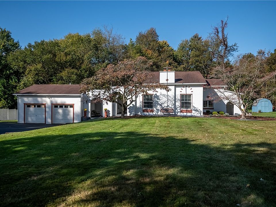 Welcome to this adorable and roomy 2-BR home in the heart of Hermitage! Entering from the covered front porch you will find a spacious but cozy family room centered on a stone-fronted wood-burning fireplace. From there either access the bedroom area, or step down into the combined living room/dining room, featuring a decorative fireplace surrounded by built-ins, as well as access to a sheltered exterior breakfast nook/patio perfect for your morning coffee. Moving on, a short hallway with additional storage connects to the bedroom/bathroom area, or step into the bright and airy kitchen with its abundance of cabinetry. The clean and dry basement (waterproofed 2019) features numerous rooms for any number of uses. In addition to storage, laundry, and workspace, there is a bonus room with a fireplace and bar that could be used for additional entertaining or living space. The exterior features a brick patio, oversized 2 car garage, and storage shed, all on more than half an acre.