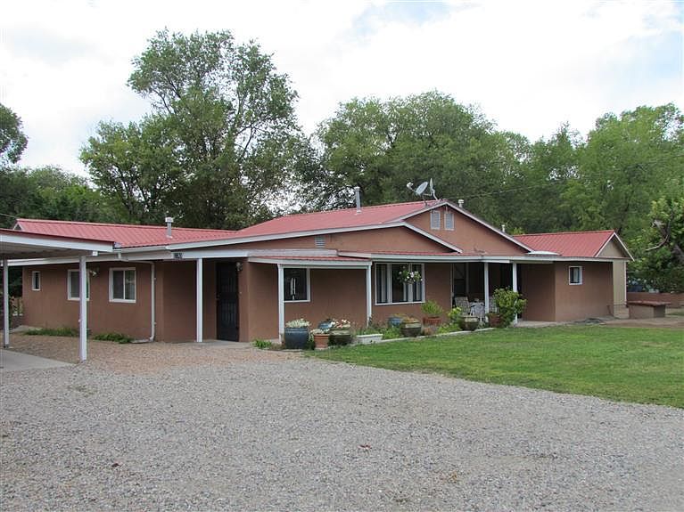 Pride of Ownership shows in this immaculate 3b/2b home on a large, 1/2 acre lot, completely fenced, groomed and irrigated. City water & Sewer (lifetime clean-out warranty on sewer pipes from home to street transfers to buyer). Private Well & Surface Irrigation Rights. Ceramic tile floors and custom built cupboards in the kitchen and baths. 2 Hot water heaters. Carpet in excellent condition. New window coverings on many of the windows. Double car oversized garage and 2 car carport along with additional one car carport. Two Tuff Sheds for storage or workshop or whatever you desire. Metal propanel roof is less than 5 yrs old. All appliances convey, refrigerator is new. Excellent location, close to schools, shopping. 30 minutes to Los Alamos or Santa Fe. Make your appointment to see this lovely home today!