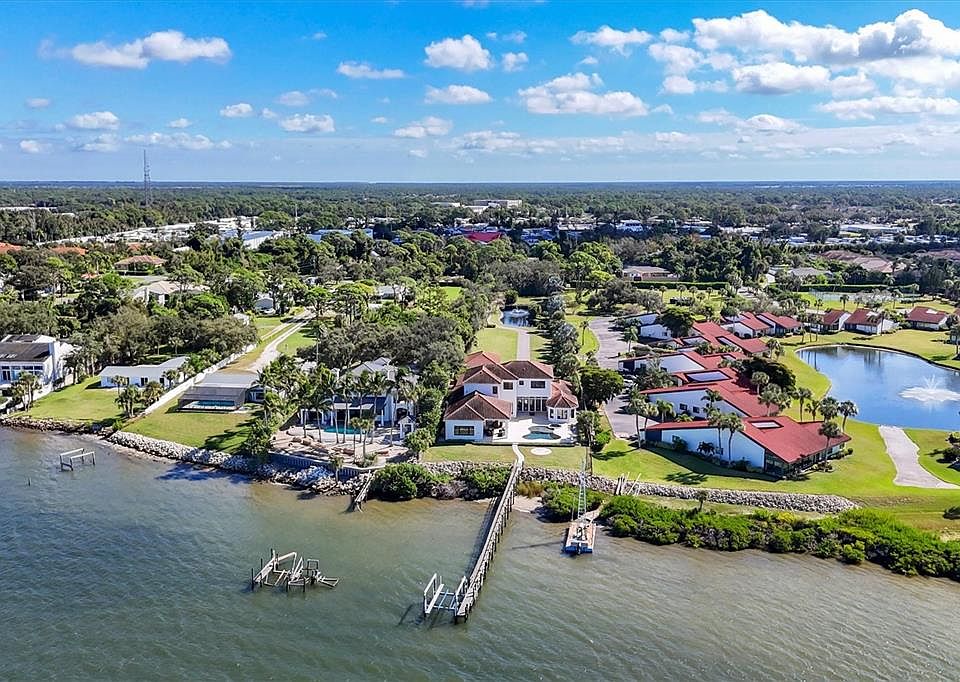 Premier Intracoastal Estate in Osprey 4 Bedrooms | 6 Bathrooms | 6,308 Sq. Ft. | 2 Waterfront Acres A rare opportunity to own two acres of private waterfront property in Sarasota, 730 Sarabay is a convergence of residential luxury and unparalleled waterfront living. The two-story home sits at the end of a long drive behind a gated entrance and tranquil pond. With approximately 100 feet of bay frontage, the property provides an uncommon level of seclusion. A private dock and boat lift rated for 15,000 pounds offer instant access to Little Sarasota Bay. With no fixed bridges in the way, vessels of any height can sail straight through Midnight Pass into the Gulf of Mexico. Unlike almost every other waterfront property in Sarasota County, this elevated acreage sits in Flood Zone X, offering peace of mind and insurance savings. The house features soaring ceilings and wide-plank oak floors. Its over-sized hurricane-impact glass fills the rooms with light. Generous living and dining areas, as well as a handsome office and bonus room with water views, flow in a blend of open-plan and formal spaces, accommodating family gatherings and grand festivities. The gourmet chef’s kitchen is equipped with solid wood cabinetry, stone counters, and high-end appliances. The primary suite, conveniently located downstairs, features a broad view of the bay, vaulted ceiling, spa-like bath, and capacious closets. Reached by travertine staircase or wood-paneled elevator, the second floor houses three ensuite bedrooms, one of which serves as a second master. Each offers stunning bay views, a full bath, and ample closets. A bonus room usable as guest suite, home gym, or playroom, completes the upstairs. The generously sized travertine patio and bayside lawn are an oasis for outdoor living and gracious entertaining. The pool features a Baja shelf and integrated spa, and the propane fire pit creates a cozy spot for cooler evenings. The covered living and dining area commands spectacular views of the vivid South Florida sunsets. Recent upgrades include two new AC units, a new pool heater, and a newly painted exterior. Characterized by long lawns and mature palms, the grounds are a low-maintenance blend of lush beauty and complete privacy. The attached 4-car garage is proportioned for contemporary vehicles. It includes a built-in workbench with capacious cabinetry. The free-standing 3-car garage is divided into two and one-car bays, easily customized for personal use. The two-bay side was an artist’s studio and includes a mini-split and large laundry sink. The one-bay side overlooks the garden and was previously a home gym. Location is the most important factor in real estate, and this property delivers. Positioned near A-rated Pine View School and Oscar Scherer State Park, 730 Sarabay is adjacent to Downtown Sarasota, convenient to St. Armands, and close to Historic Venice and world-renowned Siesta Key Beach. This home is a complete waterfront lifestyle, a legacy estate where memories are made and treasured for generations.