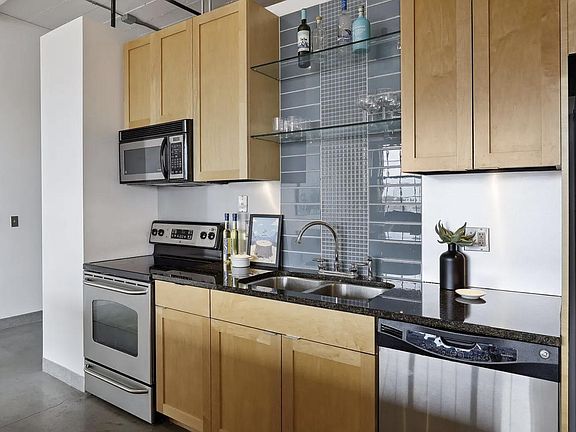 Modern cabinetsClassic loftTall ceilingsExposed brickHuge windowsAssigned outdoor parking stallIn-unit laundry