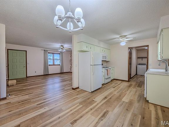 The practical layout continues to the left with a separate laundry room, while to the right, you'll find the bathroom and three spacious bedrooms. You'll appreciate the modern touch of updated LVP flooring that flows seamlessly throughout every room.