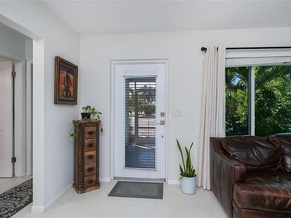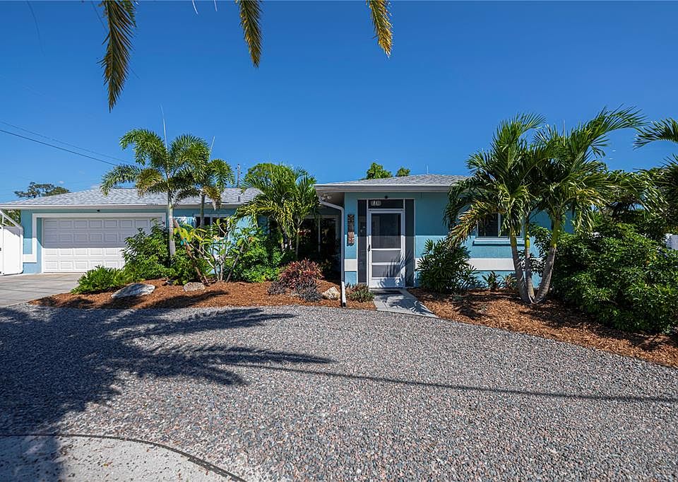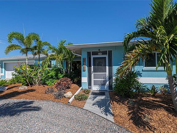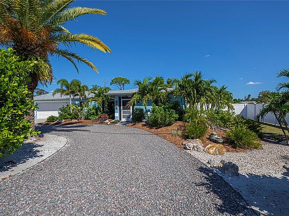 A Tropical Oasis in South Venice! Step inside to discover an inviting open floor plan featuring 2 bedrooms, 2 bathrooms, and a 2-car garage. The kitchen flows effortlessly into the dining and living areas, all highlighted by elegant terrazzo floors throughout. With an inviting eat-at bar, sleek granite countertops, modern cabinetry, and stainless-steel appliances, the kitchen is ideal for everyday living and entertaining. The spacious master suite offers a walk-in shower and dual sinks, while the generous guest bedroom is complemented by a bright guest bath with a tub-shower combination. Outdoor living is equally impressive. A screened lanai with hurricane-rated windows and a screened front porch provide inviting spaces to relax, while the large backyard offers ample privacy and parking with gravel areas perfect for RVs, campers, or outdoor toys. The oversized lot is fully fenced with reinforced aluminum posts, dual main gates, and 12-foot RV gates, plus a rocked RV area. Professional landscaping surrounds the property with privacy plants, raised vegetable beds, and mature fruit trees including mango, papaya, banana, citrus, and guava. A lined dipping pool, hard-piped with a sand filter and pump, adds a refreshing retreat. Recent upgrades include wind-rated windows installed in 2021, a roof 3.5 years old with lightning protection, gutters, and downspouts, plus a new well pump and pressure tank. The home is equipped with inline water filters, a softener, charcoal filtration, and reverse osmosis drinking water at the kitchen sink and refrigerator. For peace of mind, there is a 30/50 amp plug with generator interlock in the breaker box. Power & conduit available for future pool equipment. Additional highlights include attic storage with lighting, outdoor security lighting, ceiling fans in bedrooms, dog doors, and an outdoor shower. South Venice offers optional amenities including access to a private beach ferry, boat launch, kayak ramp, and pickleball courts at the civic center across the street. Located minutes from Gulf beaches, Venice Island, and the vibrant new Wellen Park community, this home delivers the very best of Florida coastal living with a pleasant blend of updates, functionality, and lifestyle.
