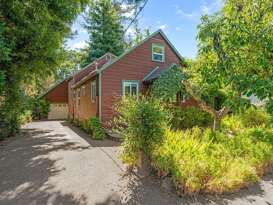Charming home in Central Healdsburg with open kitchen and living room, hardwood floors, and a bedroom and full bathroom on the main level. Two more bedrooms and a full bathroom are upstairs, with the largest bedroom having its own entrance. Lovely landscaped backyard with paved area for outdoor dining or lounging. The large detached garage nestled at the back of the property provides ample storage space, or could be a wonderful office, gym or possible ADU (check with the City of Healdsburg). Enjoy this property as it is, or renovate to create your ideal Healdsburg oasis.