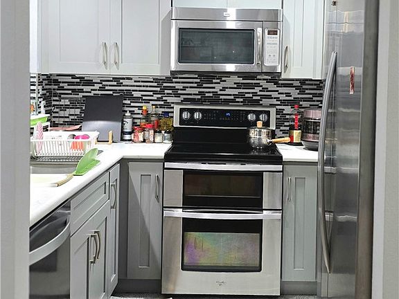 Discover this stunning urban retreat featuring 2 bedrooms, 2 bathrooms, 2 parking spots, and in-unit full-sized, stackable laundry. Spanning 957 square feet, this modern condo embodies stylish and convenient downtown living. Inside, you'll find numerous upgrades, including a beautifully remodeled kitchen with custom cabinetry, glass tiled backsplash, matte quartz countertops, stainless steel appliances, sleek ceramic flooring, and a breakfast bar. The open-concept design connects the kitchen to the living and dining areas, accented by a trendy faux-brick feature wall. Both bedrooms are generously sized, each with dual-pane sliding doors opening onto a shared balcony overlooking outdoor amenities such as a BBQ and picnic tables below. The primary bedroom boasts an eye-catching accent wall and a private spa-like en-suite bathroom, while the second bedroom provides direct access to the adjacent full bathroom, conveniently positioned across the hallway from the laundry area with a pocket door. Both bathrooms are elegantly finished with geometric tile floors, quartz vanities, and oversized white wave tiled tubs/showers. The bedrooms include ample closet space and built-ins, complemented by the luxury vinyl flooring that extends throughout most of the home. The Golden Gate Square HOA fee is $320/month, covering water, sewer, trash, building maintenance, gym access, community room, and insurance. Located in the heart of downtown Long Beach, this condo offers easy access to dining, entertainment, shopping, parks, and major freeways. This is quintessential Southern California living! Host gatherings on the lush greenbelt, take advantage of the outdoor BBQ area and clubhouse and stay active with the on-site gym. Ideally located just steps from the beach, a scenic walking/bike path, boutique shops, and fantastic local dining options. Imagine the possibilities!