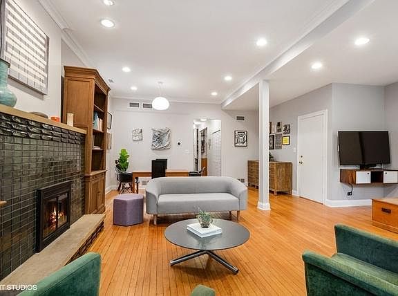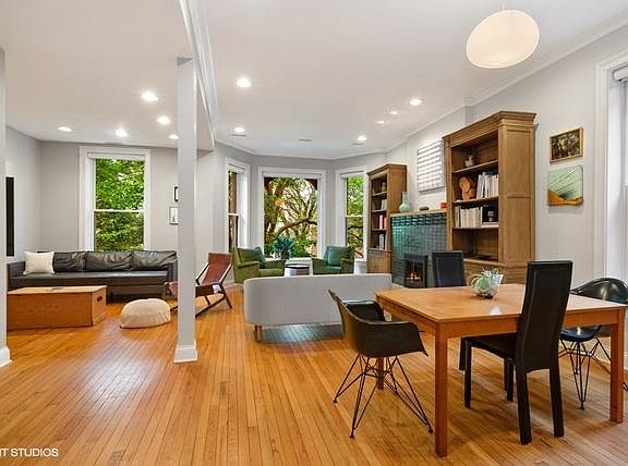 Fantastic Prime East Lakeview location within the Nettelhorst School District. Check out this beautiful & spacious 3 bedroom, 2 bath vintage home with all the modern updates. Inviting foyer opens to extra wide living room and dining area flooded with natural light through south facing bay window. Wood burning fireplace. High ceilings with recessive lighting. Hardwood floors throughout. Updated kitchen with butcher block counter tops, chic cabinetry and stainless steel appliances. In unit washer/dryer. Two exquisitely rehabbed baths, double sinks in master bath suit. Three ample size bedrooms. Huge private 16x10 back deck looks out on tranquil nicely groomed backyard with paved common patio. Includes a large private storage closet and bike space. Owner secured a transferrable rented parking spot 2 doors down for this building - $150/month or purchase from parking spot owner for $29K. Parking Does NOT have to be purchased with condo / parking can also be rented. THIS is HUGE! Balconies recently power washed and stained. Short walk to Belmont el stop, Lake front, grocery stores, dining and nightlife Broadway, Clark & Halsted have to offer in East Lakeview.