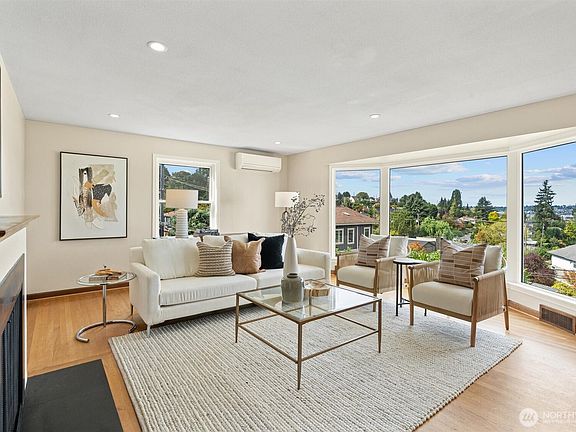 Queen Anne historic charmer extensively upgraded w/new roof, plumbing, electrical, windows, heat, cool & more; maintaining character & relieving burdens. Large living room w/expansive windows that capture sweeping views. Entertainers dining room offers space to feed a crowd or potential kitchen expansion. Large primary on main along w/stylishly updated full bath & ample 2nd bedroom. Full-height ceilings in lower level expand your space. Two bedrooms, 3/4 bath, office & rec area ensure that current & future needs are met. Prizes like a garage w/EV charger, two off-street driveway parking spots & a quiet street ending w/a cul-de-sac. Only 2 stairs up at entry. Easy & quick commute to downtown & SLU. Coe elementary, parks & restaurants nearby.