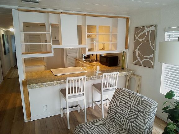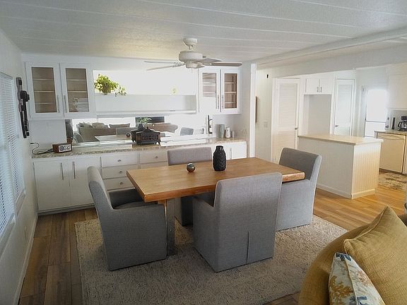 Beautiful remodeled open concept manufactured home on the lake at Village Green. Brand new 3.5 ton A/C unit, New sub flooring, new flooring,fresh sealed roof, fresch landscaping, new paint interior/ exterior, fully furnished. Newer appaliances and ready for your enjoyment.