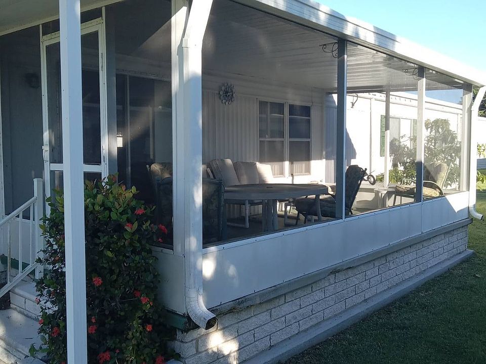 This home has a great big open yard !!! Has two large screened porches to enjoy !! Home comes furnished and is ready to move... Some cleaning and TLC you have a great spot to enjoy your winters... Village Green Community is close to shopping and restaurants... Setup a showing today..