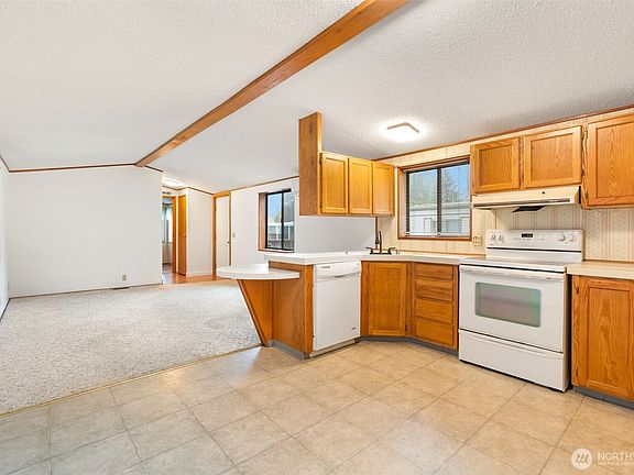Welcome to this well-maintained 1989 single-wide manufactured home located in a highly desirable 55+ community. Offering 924 sq ft of comfortable living space, this 2-bed, 2-bath home features a desirable split floor plan with bedrooms on each end of the home. Open concept living and Kitchen areas. Spacious utility room off kitchen for laundry space and pantry storage. Situated on a corner lot at the entrance of the community, this home enjoys a larger yard area and enhanced privacy. The location is hard to beat—just minutes from I-5 for an easy commute, plus an abundance of nearby shopping, dining, and everyday convenience. A wonderful opportunity to enjoy comfortable, low maintenance living in this great home.