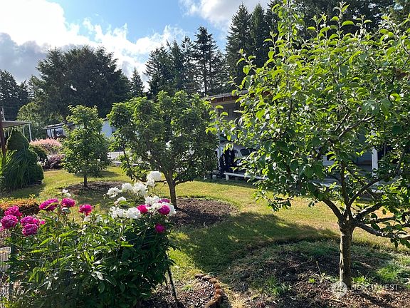 This minimal maintenance home at Alpine Estates Community is clean and well cared for in a pleasant 55+ park. The homeowner has made many improvements during the past two years; a new roof, new furnace, a Mitsubishi heat pump with AC to ensure year-round comfort along with extra insulation and a moisture barrier beneath the house along with new PEX water pipes throughout. The Kitchen has a new DW & refrigerator while the Guest Bath was completely remodeled. The spacious yard is truly a "Gardeners Delight" with manicured shrubs, numerous perennial flowers, a variety of well pruned fruit trees, a lovely pergola and a fenced veg garden with raised beds. Did I mention there's also a garden shed and a second shed for hobby projects?