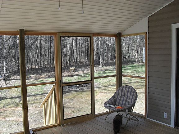 1-STORY LIVING w/ NO HOA in Great Community off Hwy. 401 - Lg Living Rm w/ Cath Ceiling, Built-in Bookcases & Brick Fireplace w/ Wood Burning Insert * 2 CAR GARAGE * Screened Porch overlooks Beautiful Lot w/ Woods in the Back for Privacy * Improvements in the last few years include ROOF (50 yr. shingles), VINYL SIDING, TRIM, GUTTERS, SCREENED PORCH, SEPTIC TANK, WELL PUMP, STORAGE BLDG, KITCHEN UPGRADES, WATERPROOF BARNBOARD TYPE FLOORING, INTERIOR PAINT & LANDSCAPING - HVAC is approximately 4 yrs. NEW