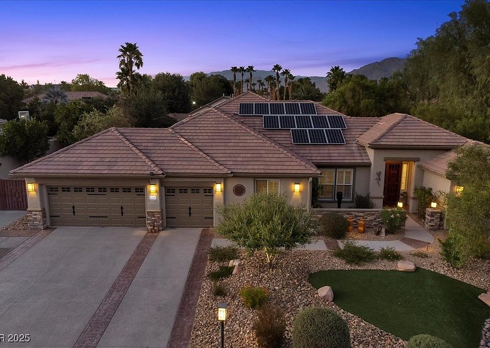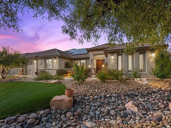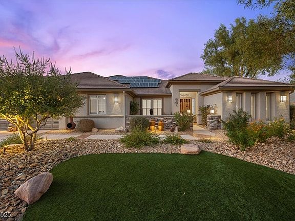 Las Vegas presents this expansive single story home that sits on an oversized custom lot that stretches nearly to a .5 acre. This home was designed for space & comfort with a 3 car garage & RV/Boat parking. The reimagined resort style backyard was made to entertain with expansive outdoor spaces, outdoor kitchen with a crisp, blue pool & spa to enjoy your summers & evenings. The open layout provides ample lighting from the numerous windows & vaulted ceilings that provide a more breathable feeling. The sizable great room has a backdrop of stone ledger with a gas fireplace and over looks the backyard. The gourmet kitchen offers an unimaginable chef experience with very little left to the imagination. One of the guest bedroom provides it's own private bathroom. The generous size primary bedroom offers a cherry wood ceiling finish, gas fireplace & exiting doors.