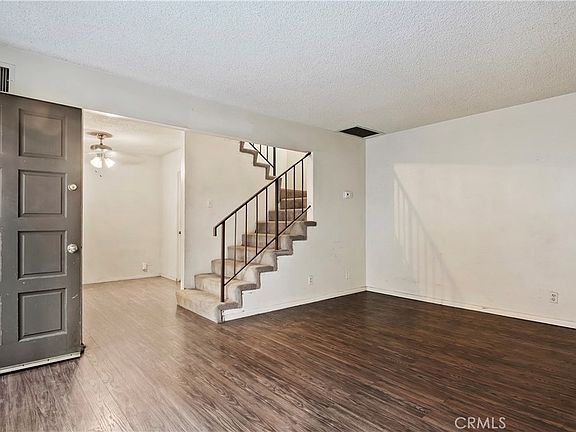 Opportunity awaits! Tucked away in the beautiful complex of Walnut Gardens is this 2 bed 2 bath home ready for the next owner to put their touches on it. Featuring an open floor plan with vinyl flooring downstairs, private patio, separate eating area and newer kitchen countertops, sink and faucet. Upstairs you will find two spacious bedrooms including the primary bedroom with vaulted beamed ceilings and full bath with tiled shower and tub. Situated in a great location within the complex, close to the laundry, pool and other community amenities, come see all that this home has to offer!