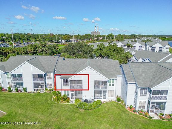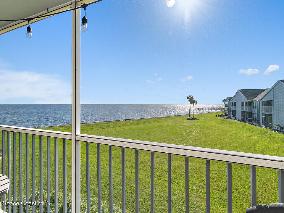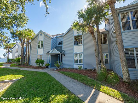 Experience breathtaking Indian River views from this beautifully maintained 2-bed, 2-bath condo in the highly desirable Sunrise Landing community. Soak in the sunshine and watch rocket launches right from your south-facing private screened balcony. Inside, this light-filled unit features an updated kitchen complete with wood-like laminate flooring, newer stainless appliances, bright white cabinetry and sleek granite countertops. The modern open layout flows seamlessly into the dining and living areas, all with spectacular river views. The spacious primary suite includes an ensuite bath with a dual-sink vanity and updated fixtures. Step outside and enjoy the well-manicured grounds and resort-style amenities including a private dock, 2 pools, 2 hot tubs, 2 saunas, 2 fishing piers, 2 clubhouses, 2 spas, tennis, pickleball & shuffleboard courts! Enjoy active community events and peaceful waterfront living all in one! Pet-friendly with low HOA fees. Assigned parking is right at your door! Conveniently located near shopping, dining, boat ramps, parks, and beaches, with easy access to I-95, Kennedy Space Center, Orlando attractions, and international airports.