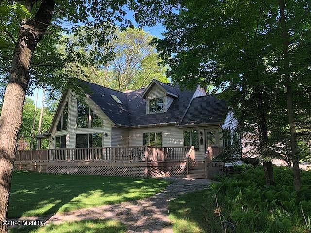 Spectacular setting and property on the Little Muskegon River in Canadian Lakes. Panoramic views of river and golf course with wildlife galore. Spacious decking with stone sitting area and fire pit overlooking the river. Cathedral great room with fireplace, loft area and a 4 season sitting room all taking advantage of these breathtaking views. Lower level offers game room with bar area and fireplace plus bedroom and full bath. Surround sound system throughout house. House and 3 stall garage offer lots of storage. Home is situated very near the Royal golf course. Great fishing, kayaking, hiking and just all around great recreational opportunities exist out your back yar. Boat docking on Main CL water way. Call for your private showing today. Adjoining lot#264 available.