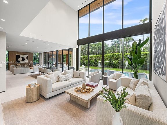 Welcome to this stunning contemporary home located in the High Pines neighborhood. Spanning over 4,995 sqft, it boasts 6 bedrooms and 6.5 bathrooms + a 2-car garage with built-in cabinets. The high ceilings + floor-to-ceiling windows flood the interior with natural light. The 48” X 48” Italian porcelain tile flooring adds elegance. The open kitchen features a top-of-the-line Sub-Zero/Wolf appliance package, Pedini custom cabinetry, a bar, and a Subzero wine tower for 160+ bottles. The primary bedroom offers a luxurious and spacious ensuite spa-like bathroom + a spacious master walk-in closet by Italkraft. All bathrooms have ItalKraft Vanities, Toto Toilets + Graff fixtures. Step outside to your private terrace and enjoy the pool and full Summer Kitchen. Sonos Sound system throughout!