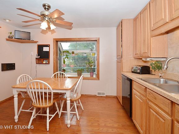 Charming home with a fabulous Bridgeview location!Enclosed front porch opens into a spacious living room w/brick wall and beams!! Separate dining room with hardwood flooring.Eat in kitchen with hardwood flooring, lots of cabinets, SS refrigerator and neutral backsplash!Large family room with windows and lots of natural light!Large Master bedroom with two additional bedrooms on 2nd floor! 3 updated bathrooms throughout the home. Additional kitchen and bedroom/bath located in the basement.Perfect in law arrangement! Private fenced yard with patio and pool! Many large trees and landscaping make this backyard a great place to entertain! 2 car garage with lots of room for storage!Large corner lot!