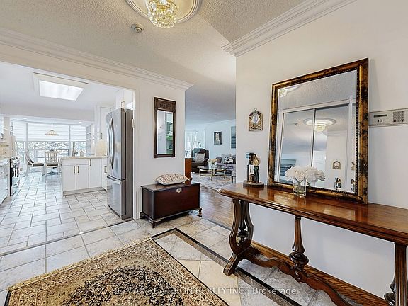 ** Bright & Sun-Filled Condo with Panoramic West Views!** Welcome to *Skyrise on Yonge* - where comfort meets convenience. This **spacious 2+1 bedroom "Trump" model suite** offers impressive **1,675 sq. ft. of open-concept living** filled with natural light from wall-to-wall windows and gleaming hardwood floors. The **unique split-bedroom layout** ensures privacy, with the bedrooms thoughtfully separated by a large, inviting living room. The **primary suite boasts a walk-out to a private balcony, a 4-piece ensuite, and a generous walk-in closet. The **second bedroom is large and comfortable**, paired with a **second full bathroom** for family or guests. Enjoy cooking and entertaining in the **renovated family-sized kitchen**, featuring stylish cabinetry with white doors and gold handles, granite counters and backsplash, a double sink for a kosher setup, and **new stainless steel appliances**. The bright breakfast area overlooks the **tennis courts and manicured gardens** to the west. This unit also offers **a dedicated in-unit workshop space** for project-oriented individuals, plus an **extra interior locker**. These two rooms can even be **combined to create a versatile bonus space** ---perfect as a hobby room, small office, or extra storage. Practicality meets comfort with **abundant closet space, interior storage, updated window treatments, ensuite laundry, ** and a cozy balcony perfect for morning coffee or evening relaxation. Life at Skyrise is enriched with **resort-style amenities**: an indoor pool, fitness centre, squash, and tennis courts, party rooms, library, rooftop patio, manicured gardens with BBQs, underground parking, and plenty of visitor parking. All within a **warm, welcoming community** you'll be proud to call home. The location is unbelievable ---close to **grocery stores, retail shops, the Promenade Shopping Mall, parks, schools, and excellent public transportation, making everyday living both convenient and enjoyable.