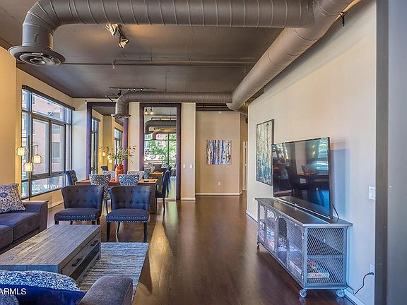 Light and bright loft style condo with huge windows overlooking pool plus private outdoor balcony. Gorgeous wood floors, two large bedrooms on separate sides of the unit with large walk in closets and two updated bathrooms! Updated Kitchen opens to family room making this 1303 square feet seem like 2000 +! The 3rd Avenue Loft building is just steps from everything in Old Town Scottsdale! Walk to shops, museums and dining! Two assigned parking spots in the gated garage and a concierge daily on site to buzz guests/deliveries in through lobby door. Extra large assigned storage space in basement. One of the BEST locations in Old Town Scottsdale! Can be sold furnished on separate bill of sale! Hurry! Ideal floor plan and view!