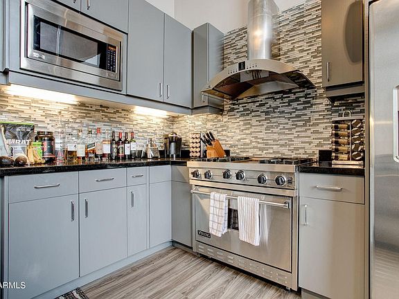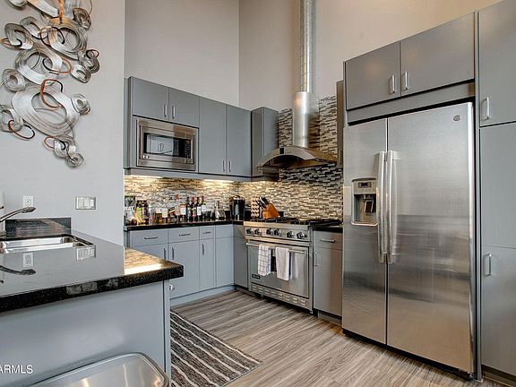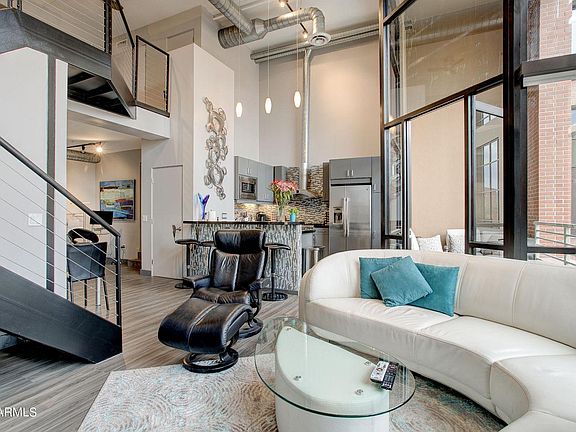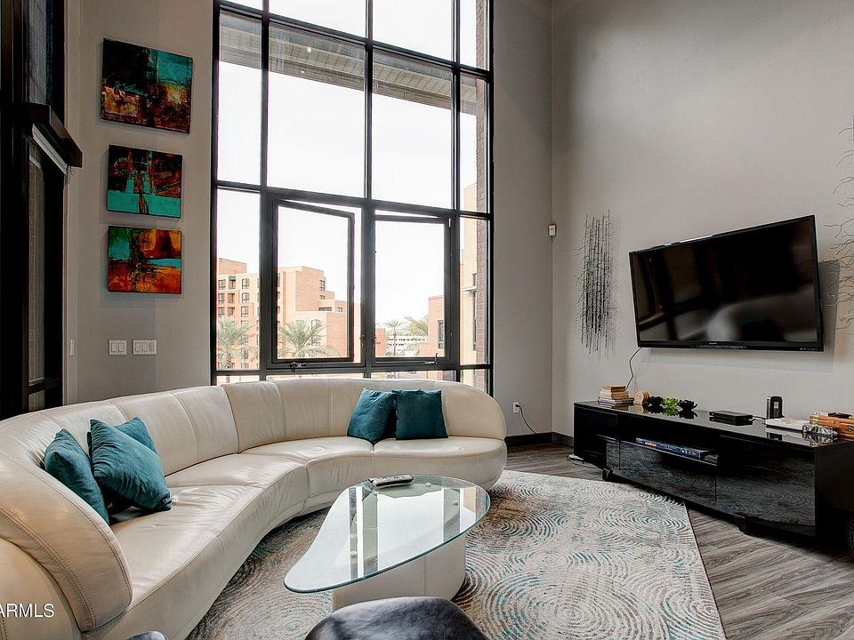 Stunning loft with 20 ft ceiling and Camelback mountain views. Full wall of glass gives great natural light and open feeling. This unit is fully furnished and decorated with high end modern decor. 2 full bathrooms and open concept upstairs bedroom is a loft. 2 of the best parking spots in the underground parking. Also large storage area in downstairs for bikes, it is huge. Granite counter tops and top of the line appliances with gas stove. Custom lighting and shades are all remotely controlled. The lofts have a stunning pool, hot tub and fireplace area with a large private gym. 3rd Avenue lofts is in the heart of downtown Scottsdale, close to restaurants, shopping, easy access to freeways, you can walk or bike to everything, Civic Center and night life.