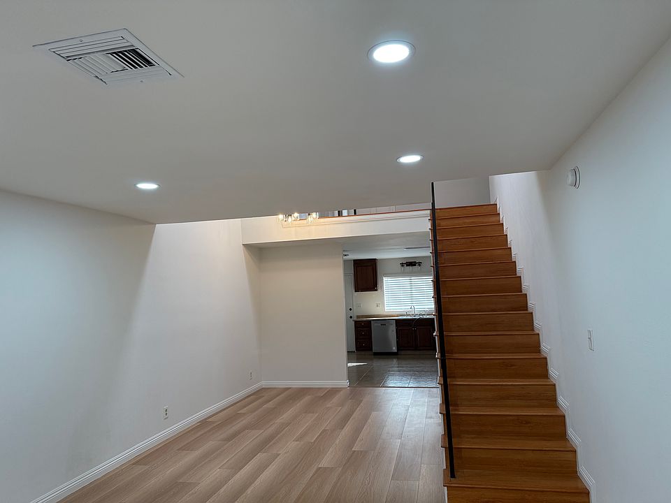 2 story town house with 2 bed 1.5 bath, wood floor and patio. Owner pays for water, power is covered by tenant. Parking is located below the unit. Community amenities include meeting rooms, laundry, lush green walking spaces and pool. Owner pays for water, tenant is responsible for the rest of the utilities.