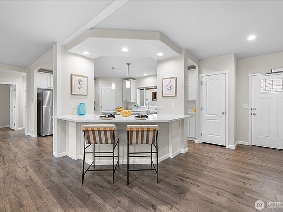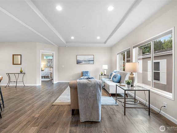 Experience the best of riverfront living at Inglewood East Shores, a 55+ waterfront community on the Sammamish River. Launch a kayak or paddleboard from private access, join friends at the clubhouse, or relax in your nearly new 2024 home. Inside, luxury details stand out—quartz counters, soft-close cabinetry, engineered wood floors, and elegant coffered ceilings. Wall-vented A/C keeps you comfortable year-round, while the spa-inspired bath offers both a soaking tub and roll-in shower for accessibility. With auto-entry, single-level design, and over 1,600 SF of bright, open living, this 3-bed/2-bath retreat blends modern finishes with everyday comfort. Top-rated Northshore Senior Center just 3 miles away!