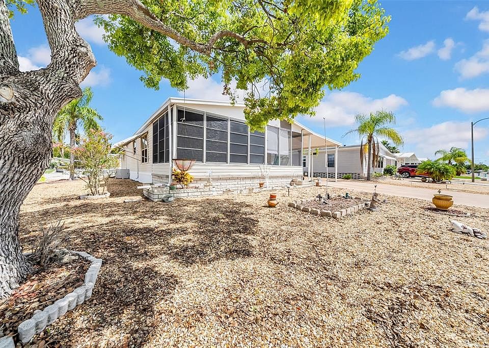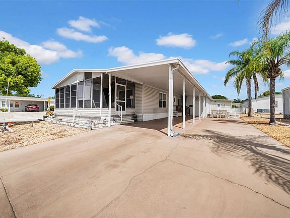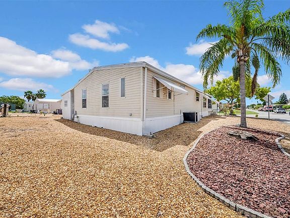 Spectacular home in the highly sought after community of Ponderosa Park where you own the land your home is on (no surprise lease hikes here) and incredibly low HOA at only $250 a year!! This amazing and spacious home has it all, two lanais', large eat in kitchen with a pantry that will be the envy of others and so much more and easy to clean linoleum flooring! The dining room and living room have an open concept that makes this home feel even more spacious! Indoor laundry is always wonderful to have so this home has it all. The master boasts a large walk-in closet that has plenty of room for all your clothes and then some! Low/no maintenance yard so you can spend your free time at the amazing clubhouse, pool or outdoor games area. No one gets bored in this community! So many events and let's not forget the large, heated pool as well! This home is waiting for the right buyer to come and make it their own. It comes with all that you see so all you need to do is bring your imagination and your toothbrush and get started enjoying the Florida life!!
