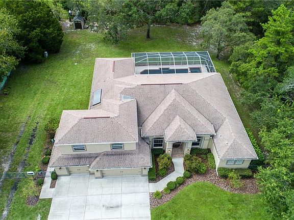 The moment you walk through the door into the foyer, formal dining room and formal living room with the vaulted tray ceilings and crown molding you'll fall in love. This beautiful home in Royal Highlands boasts 5 bedroom, 4 bath, 3 car garage. The second floor (5th bedroom) can be used as an in-law suite, game room, theater room, etc. The living room and kitchen share a 2-sided fireplace. Check out the gourmet kitchen with breakfast bar, island flat top with hood, real wood cabinets, all stainless steel appliances and walk in pantry, wine fridge and quartz counter-tops. Master bath boasts of a frame-less shower door, a jetted garden tub, dual sinks and a 2 way mirror that hides a TV. Master bedroom opens to the pool with sliders, has his and hers closets with custom built-ins. If you work from home, the office/den gives you plenty of privacy. Separate laundry room has storage and wash tub. Bedroom 4 also opens to the pool area. Spend your weekends and evenings sitting out on the lanai area next to the pool and spa overlooking your fenced in acre of land. New heater was recently installed for the pool and spa. This home is perfect for entertaining and large family gatherings. Just 6.5 miles from the Suncoast, Pkwy, 10 minutes from shops, restaurants and entertainment. Enjoy the beauty of the Nature Coast. Home is a stabilized remediated sinkhole with documentation. Repaired 7 years ago and is fully insurable and can be mortgaged. Owners are willing to help with closing costs.