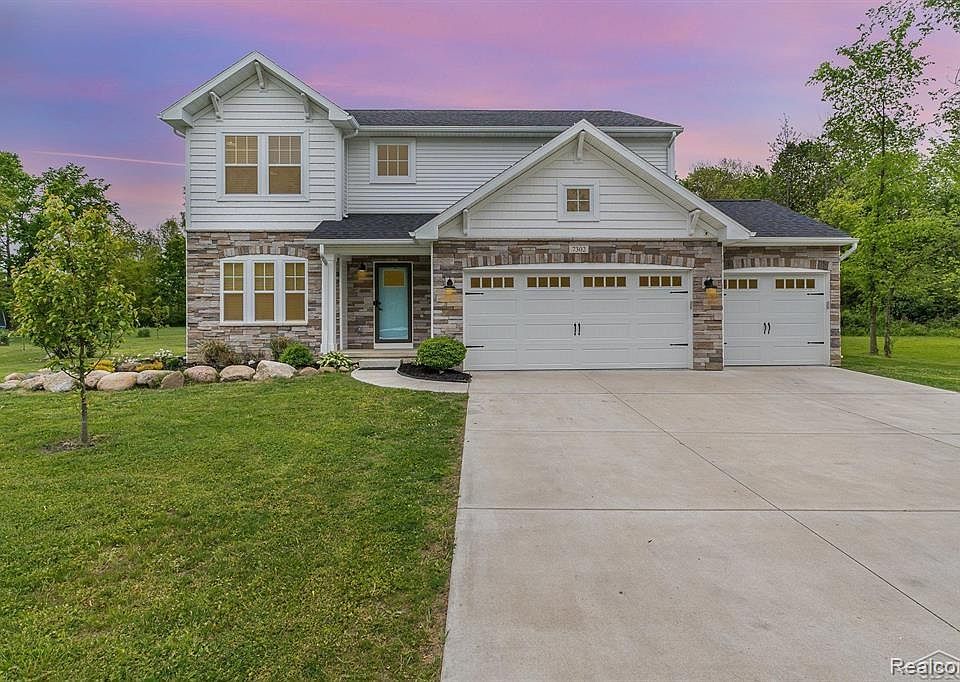 Welcome to this stunning 3 bedroom, 2.5 bath home situated on a spacious one-acre lot in the desirable Bear Creek Estates subdivision. Built in 2021, this home offers a perfect blend of modern design and functional living spaces. The main level features a flex room/office, a convenient mudroom off the garage, and a beautiful kitchen with a large walk-in pantry. Upstairs, you’ll find a versatile loft area - perfect for a kids’ hangout, office, or workout space - along with generously sized bedrooms. The huge master suite boasts a private bath and a large walk-in closet. Step outside and enjoy the gorgeous backyard, complete with a back deck and patio, perfect for entertaining or relaxing in a peaceful setting. The basement is ready to finish to your liking, offering endless possibilities. Other highlights include a finished garage floor and the charm of living in one of Swartz Creek’s most sought-after subdivisions. Don’t miss your chance to own this move-in ready home with plenty of space inside and out!