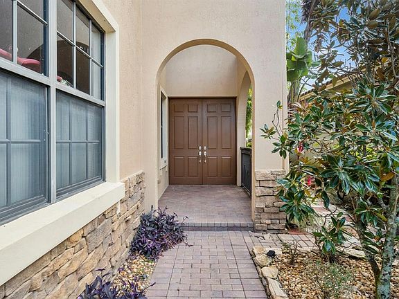 This breathtaking 5-bedroom, 4-bathroom pool home offers a spacious kitchen, family room, and formal dining area. The luxurious master bedroom features a large walk-in closet and beautiful water views. Enjoy the fenced backyard and private pool, plus a 3-car garage with access to world-class amenities for a resort-style lifestyle. Located near a nature reserve for added privacy, it's within walking distance to A-rated schools and just minutes from grocery stores, restaurants, and shopping. Easy access to the 869 expressway, I-75, 441/SR-7, and the Turnpike. The well-maintained interior includes upgraded appliances and wood flooring. The HOA requires a minimum credit score of 670. Don't miss this opportunity!